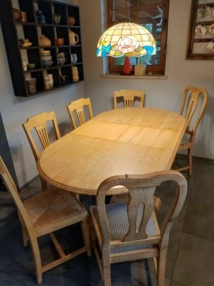 Sprzedam stół z drewna piniowego. Rozkładany. Na 6 osób, po rozłożeniu na 8. W bardzo dobrym stanie. Żadnych widocznych śladów zużycia. Firmy Chalet.Anna